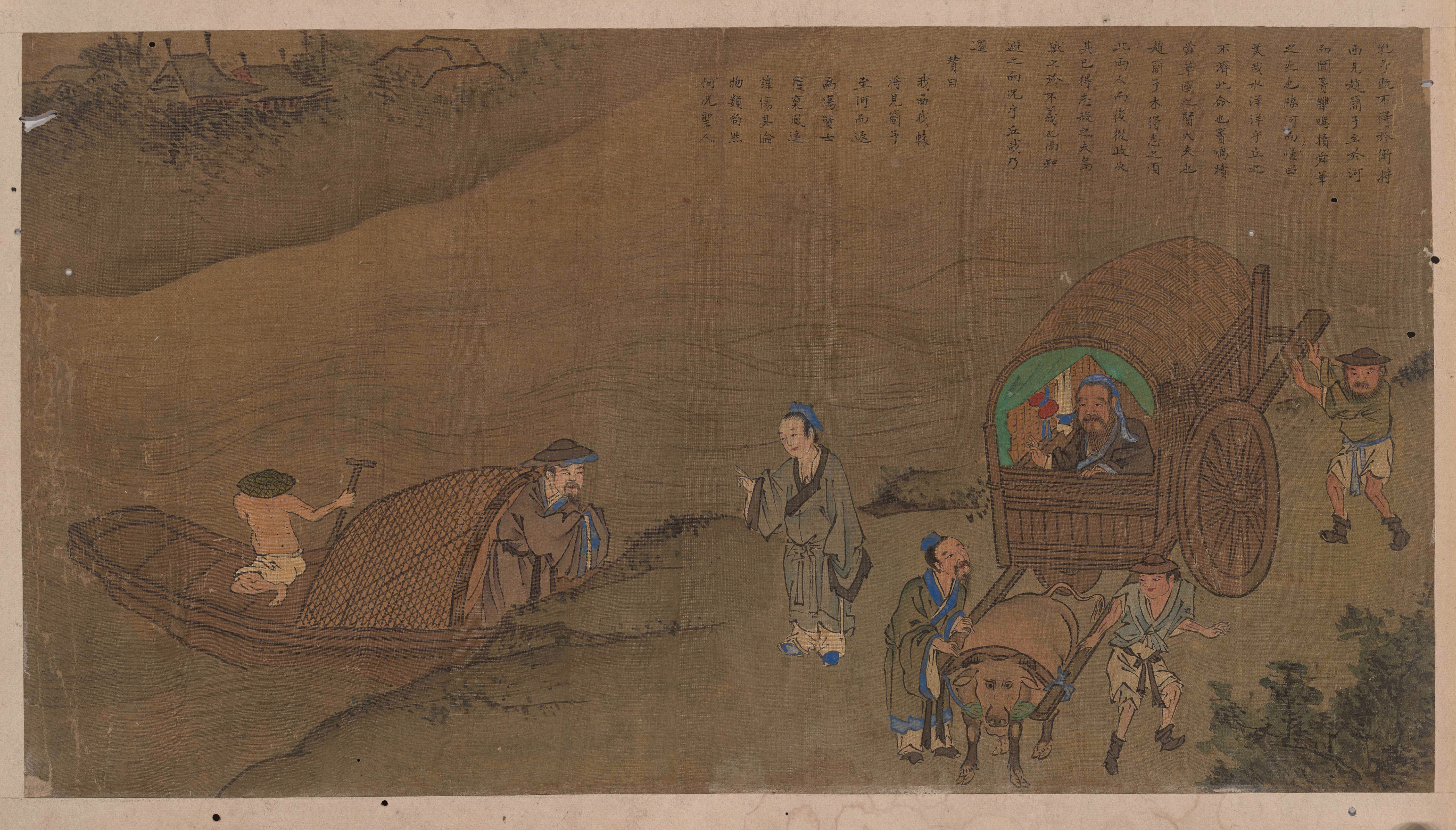 孔子在卫国得不到重用,想到晋国去见赵简子,到黄河边上听说晋国杀了贤大夫窦鸣犊、舜华,他临河叹息,认为 “君子讳伤其类”,便返归卫国。