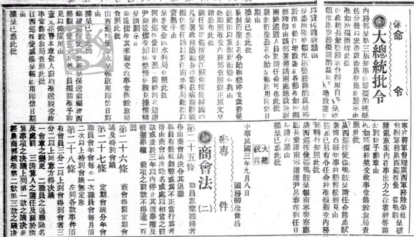 《大总统批令》
