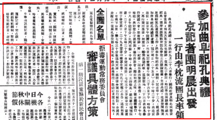 《参加曲阜祀孔典礼京记者团明晨出发》