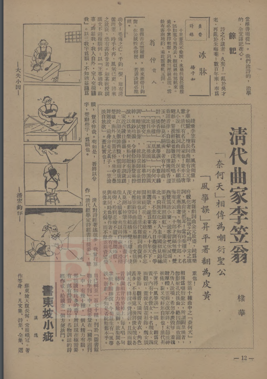 棣華:《淸代曲家李笠翁“奈何天”相传为嘲衍圣公“风筝误”升平署翻为皮黄》
