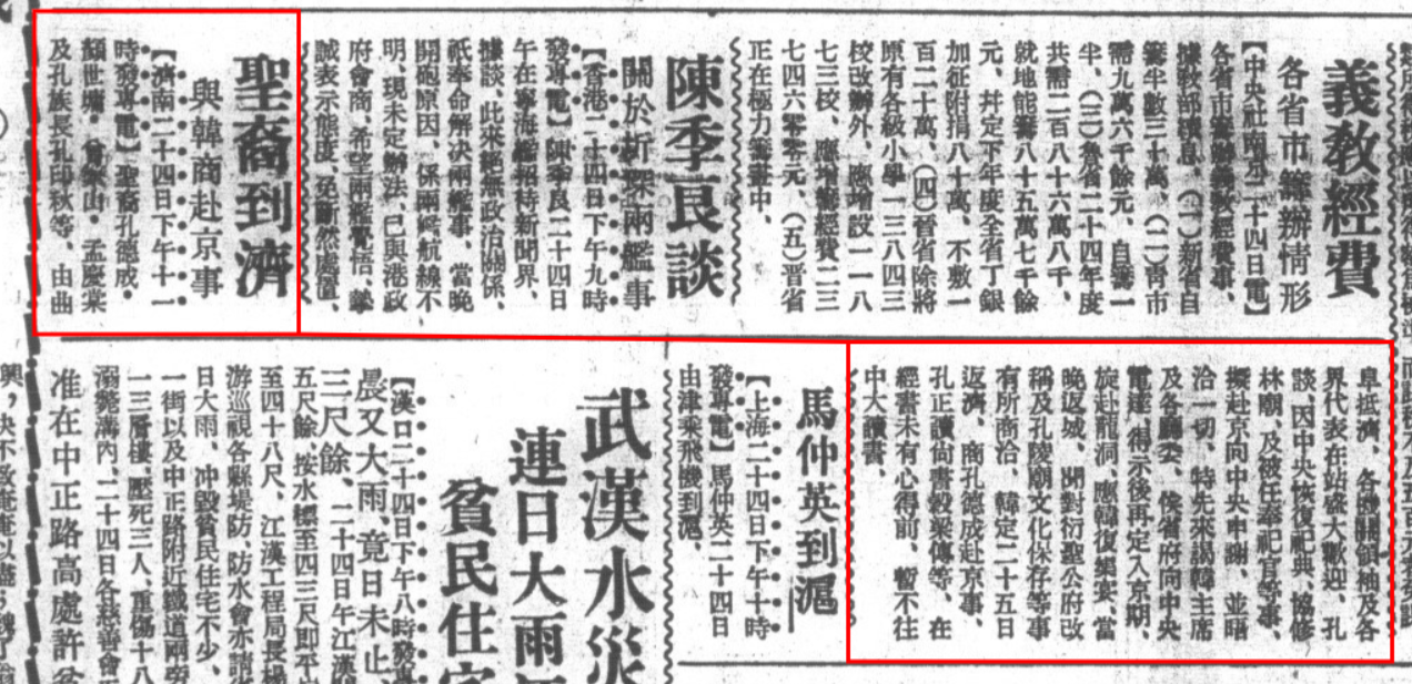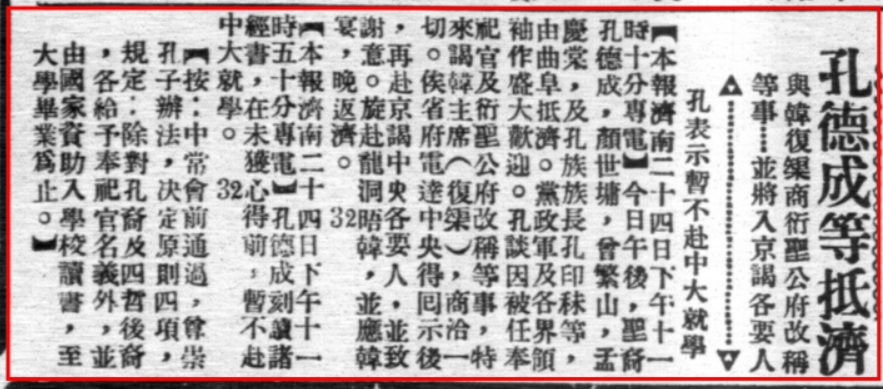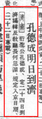 《孔德成明日到济》