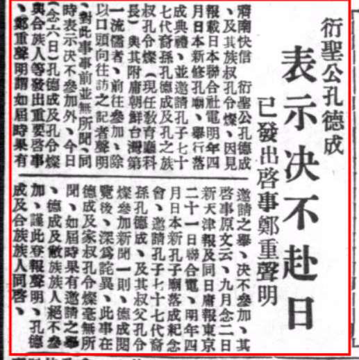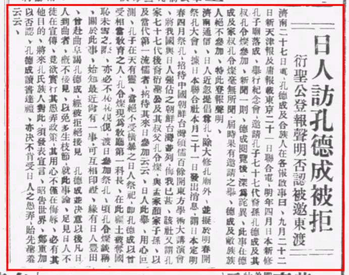 《孔德成启事不参加日本祀孔》