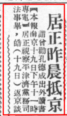 《居正昨晨抵京》