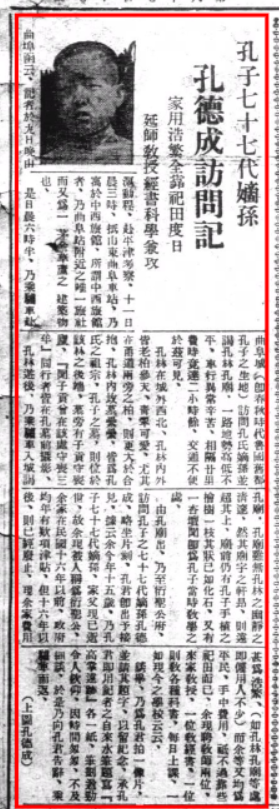 《孔子七十七代嫡孙孔德成访问记》