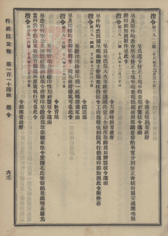 《指令:第三九一五号(十八年十二月三十日):令教育部:呈明衍圣公绝缴印情形祈鉴核令遵由》
