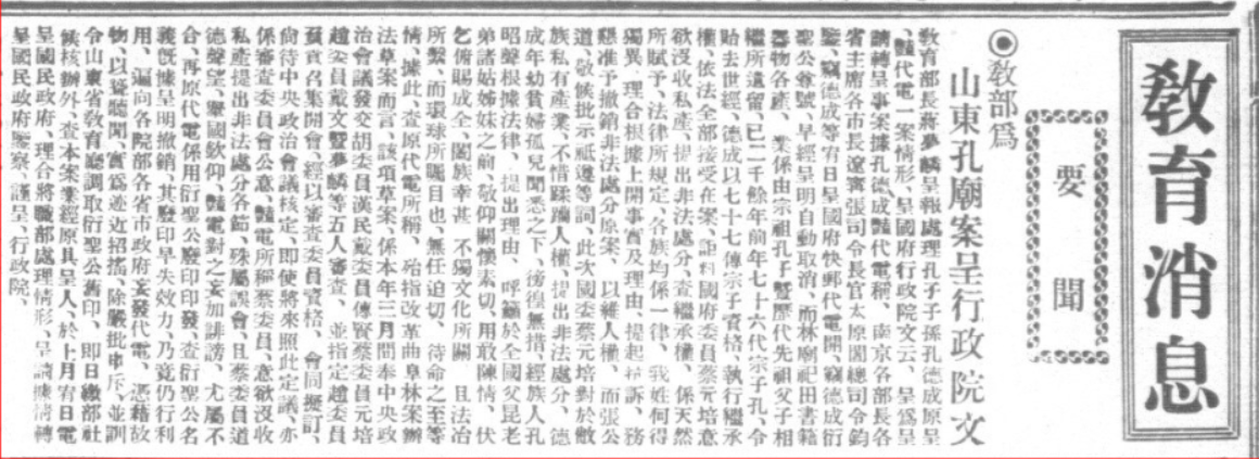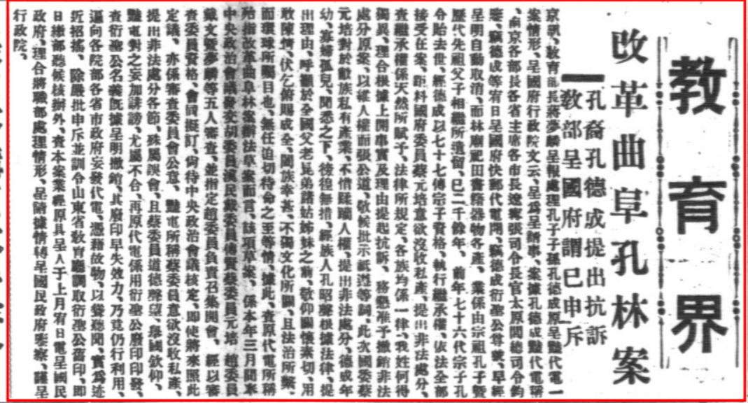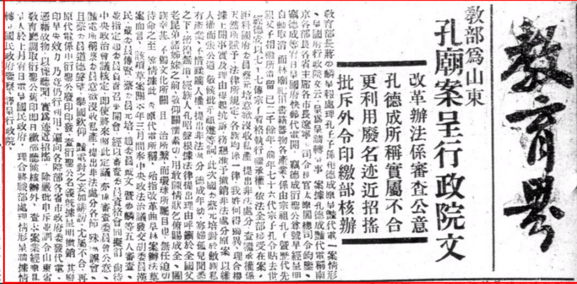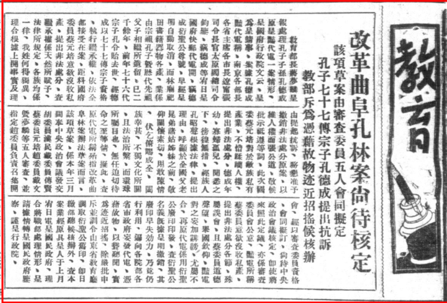 《改革曲阜孔林案尚待核定》