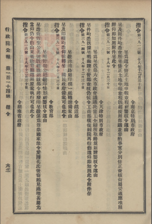 《指令:第三九一五号(十八年十二月三十日):令教育部:呈明衍圣公绝缴印情形祈鉴核令遵由》