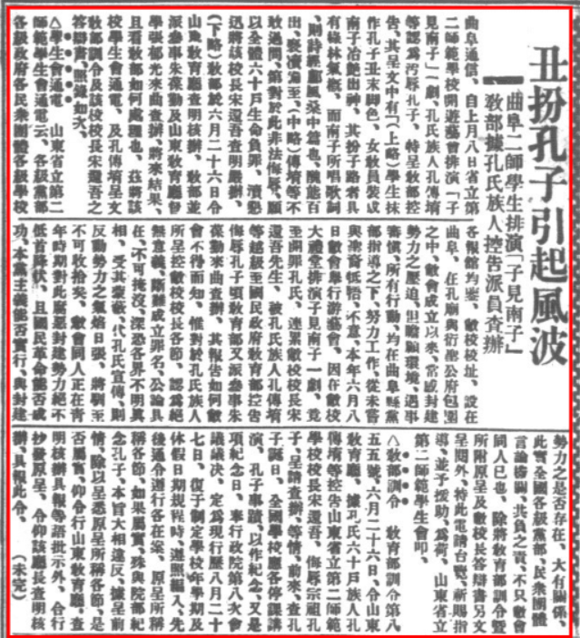 《丑扮孔子引起风波(续)》