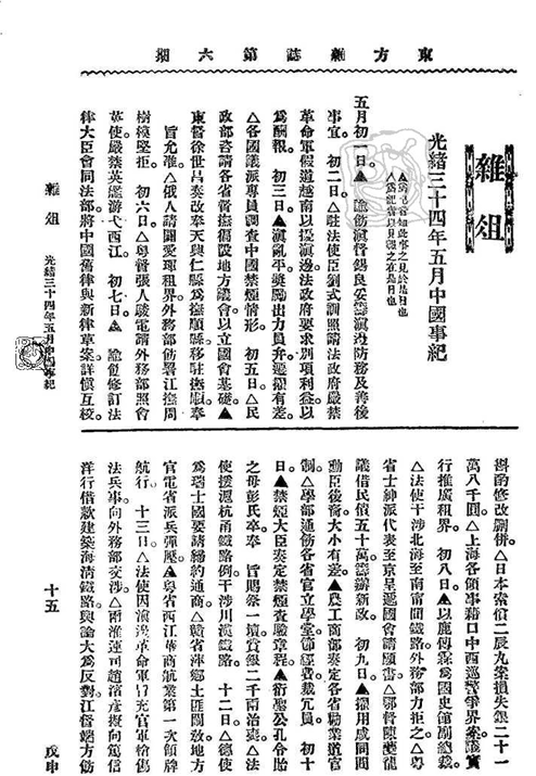 《光緖三十四年五月中国事纪》