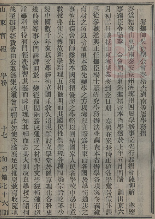 《学务:署抚帅吴衍圣公会奏稽查济南等屠学务折》