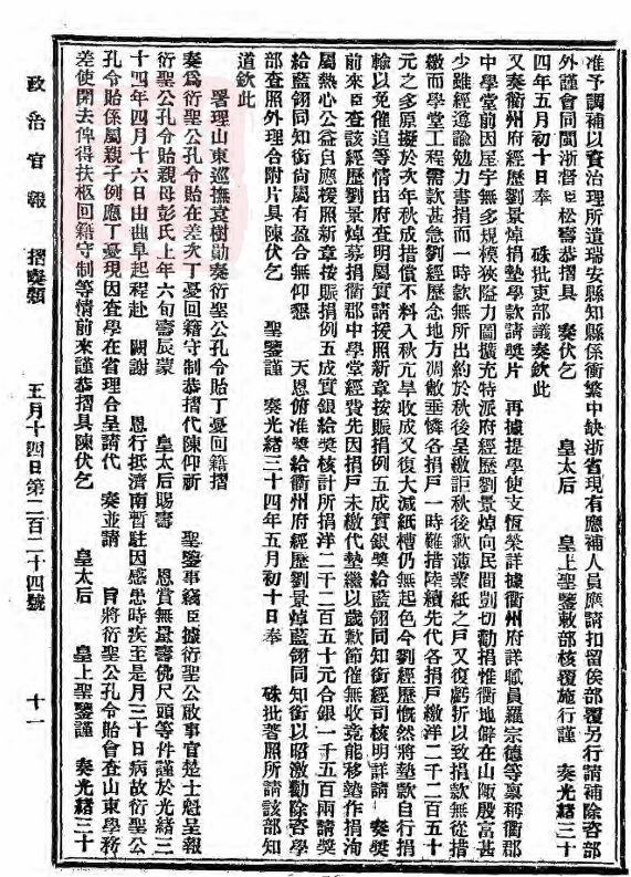 《折奏类二:署理山东巡抚袁树勋奏衍圣公孔令贻丁忧回籍折》
