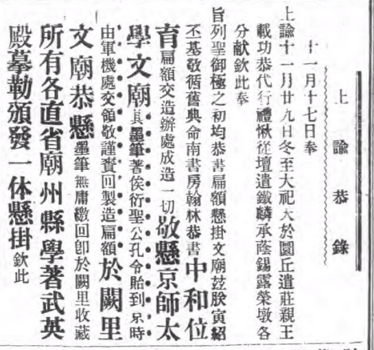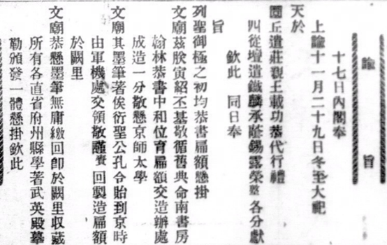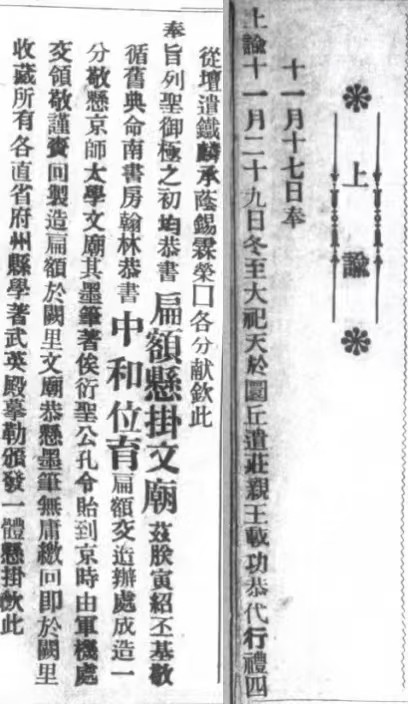 《十七日内阁奉上谕十一月二十九日冬至大祀……》