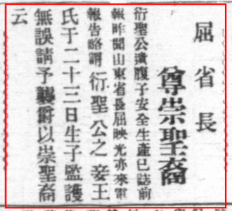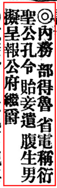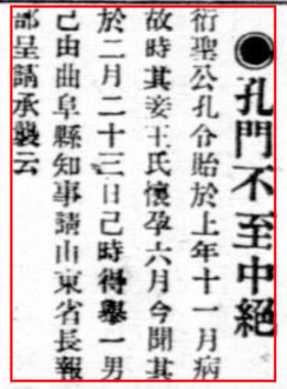 《内务部得鲁省电称衍圣公孔令贻妾遗腹生男……》