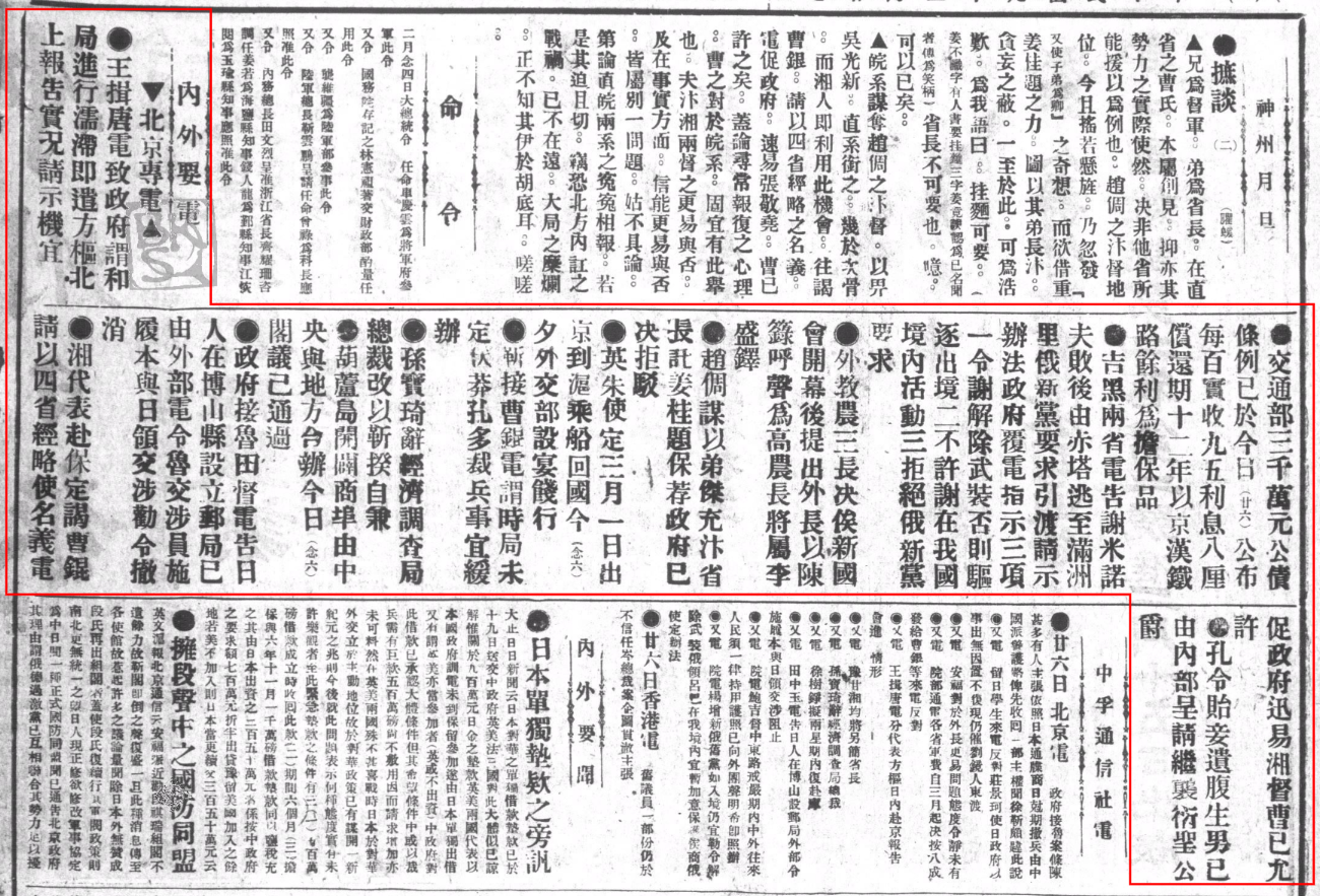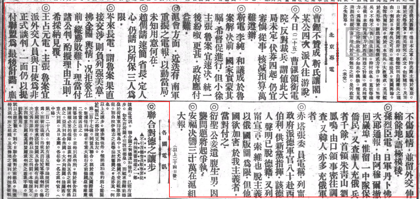 《外交委员会、条陈政府、请撇开德约、驳回通牒、再与日直接交涉、当局颇赞许、在研究中、……》