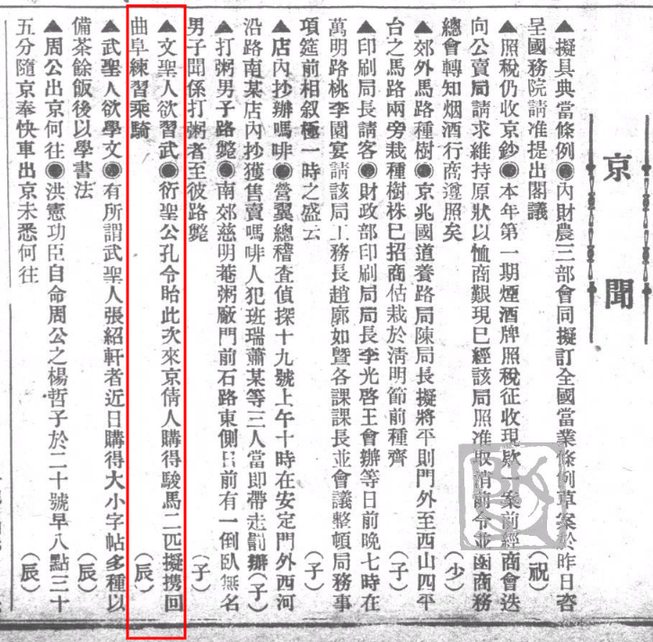 冬心:《衍圣公在京购得骏马二匹运回曲阜练习骑术张绍轩近购大小字帖甚多……》