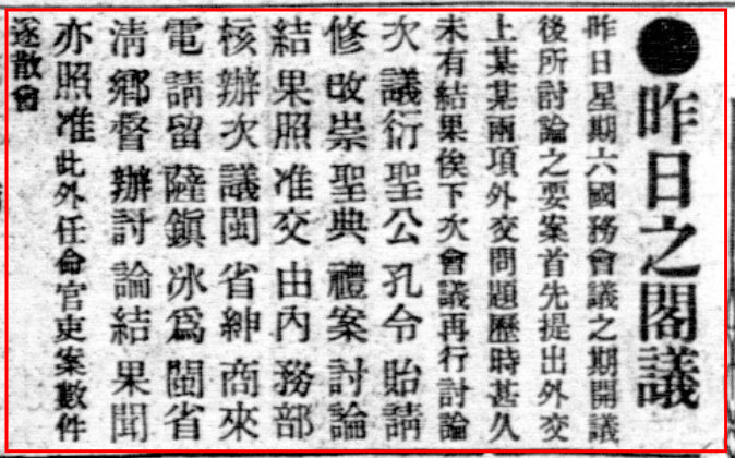 [T]《十五日阁议外部请收回沪会审公堂用人权交司法部核议又衍圣公……》