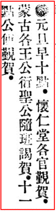 [T]《元旦早十点.怀仁堂各官觐贺.蒙古各王公衍圣公随班谒贺.十一……》