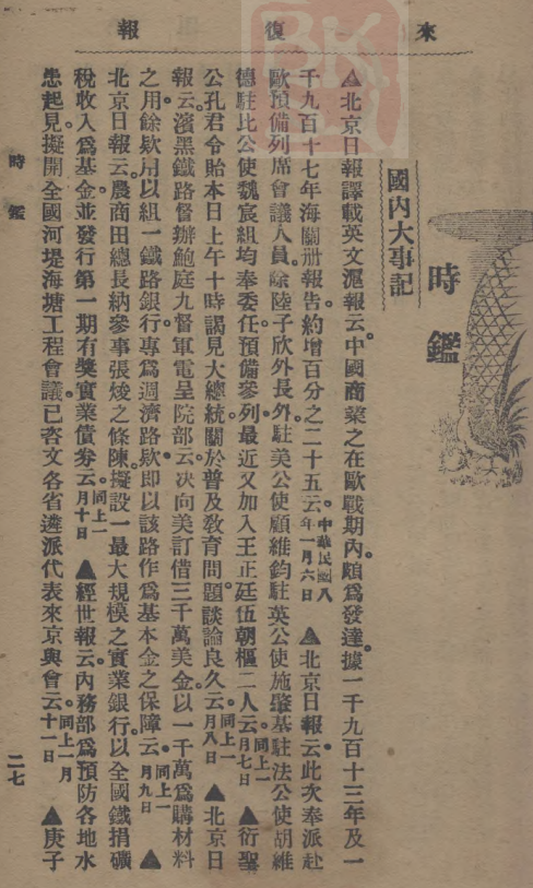 《时鉴:国内大事记(中华民国八年一月八日):衍圣公孔君令贻本日上午十时谒见大总统……》