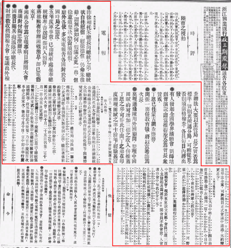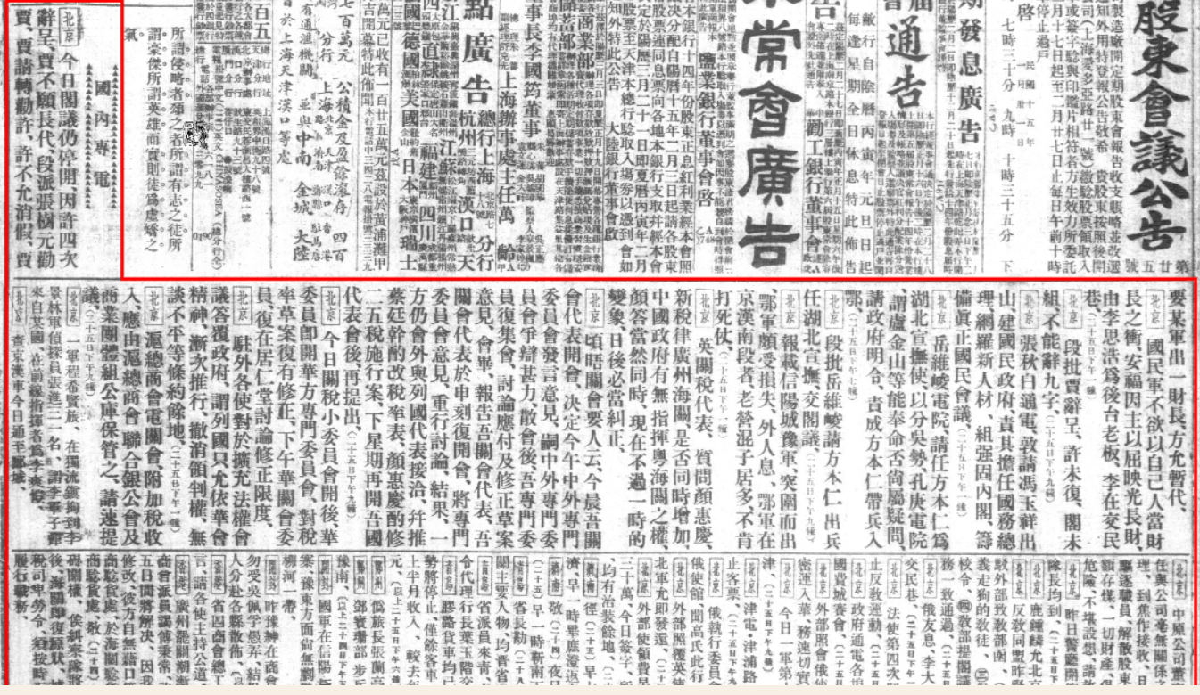 [T]《北京专电 昨徐相托朱总长向总统乞退总统……》