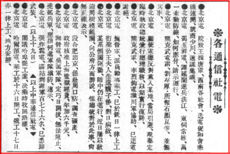 《各通讯社电》